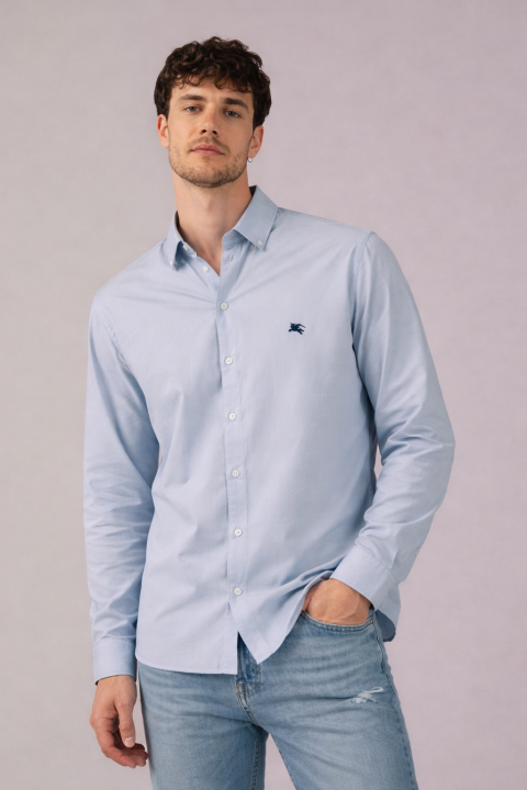 Tommy_Hilfiger Sky Embroidery Logo Oxford Lycra Premium Shirts F2626-SK