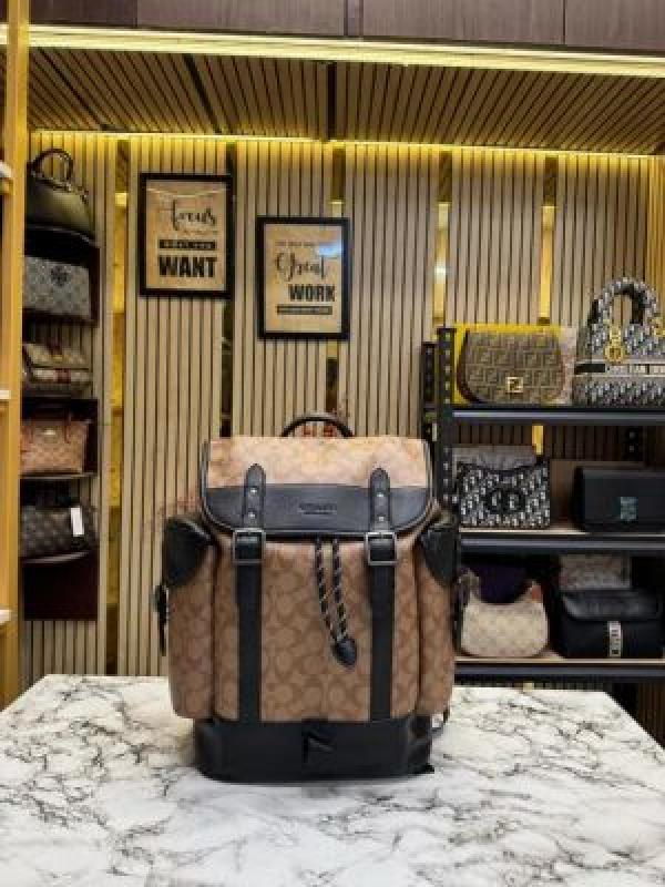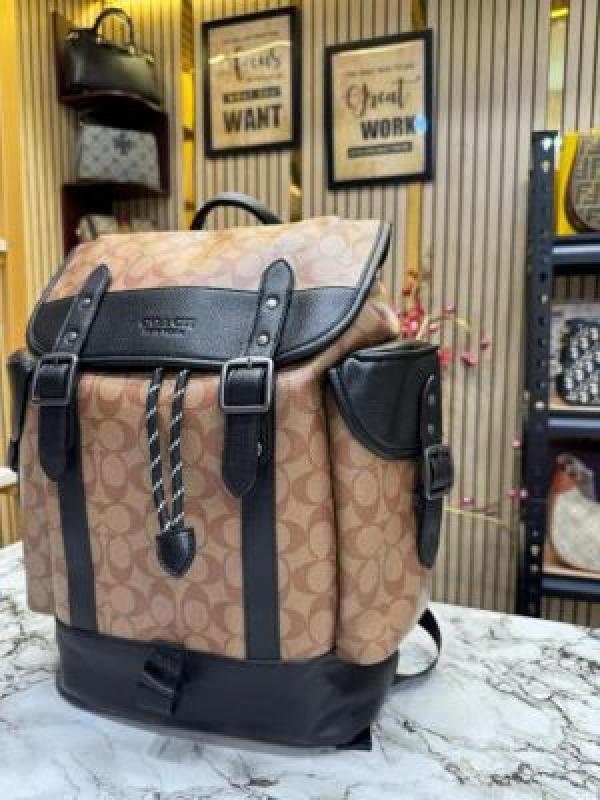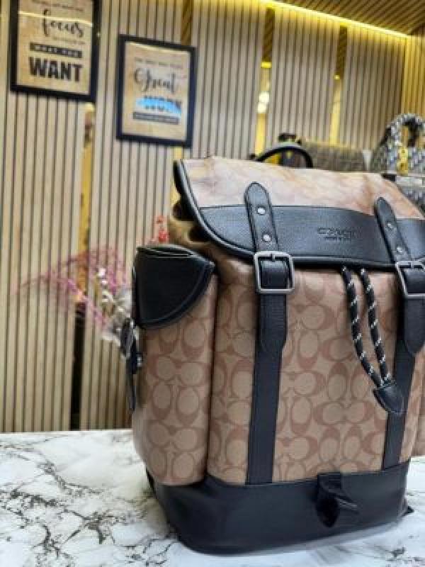 COAC_H HITCH LEATHER BAGPACK WITH DUST BAG PREMIUM QUALITY APRICOT BLACK 2252