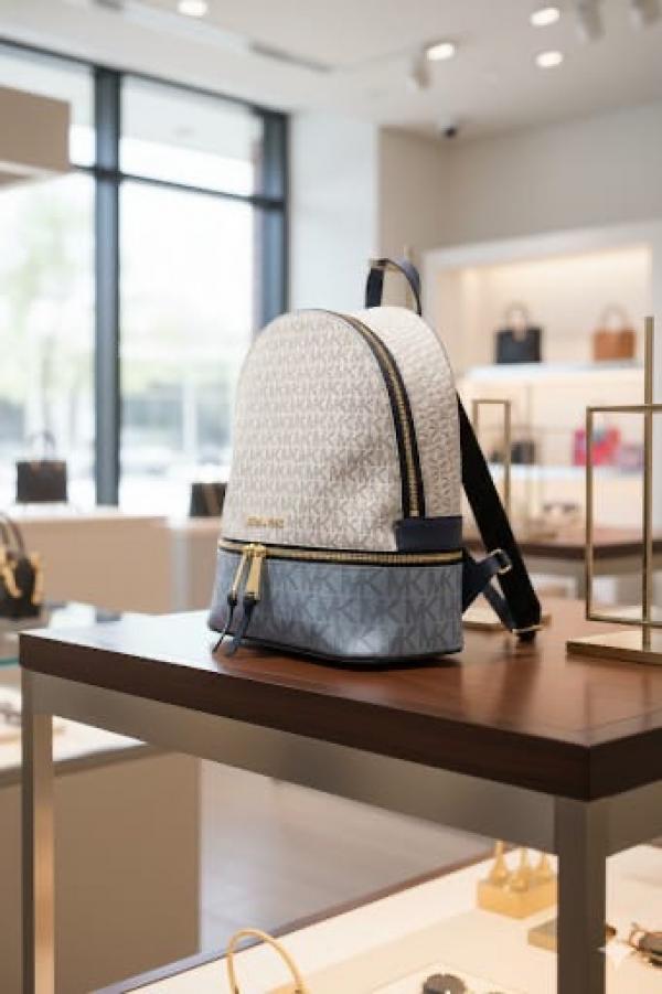 Michael_Kors_Rhea_Medium_Color-Block_Brown_Logo_Backpack_Blue_With_Dust_Bag 1005