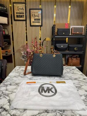 Michael_Kors Cynthia Signature Satchel Bag With Dust Bag (Black)