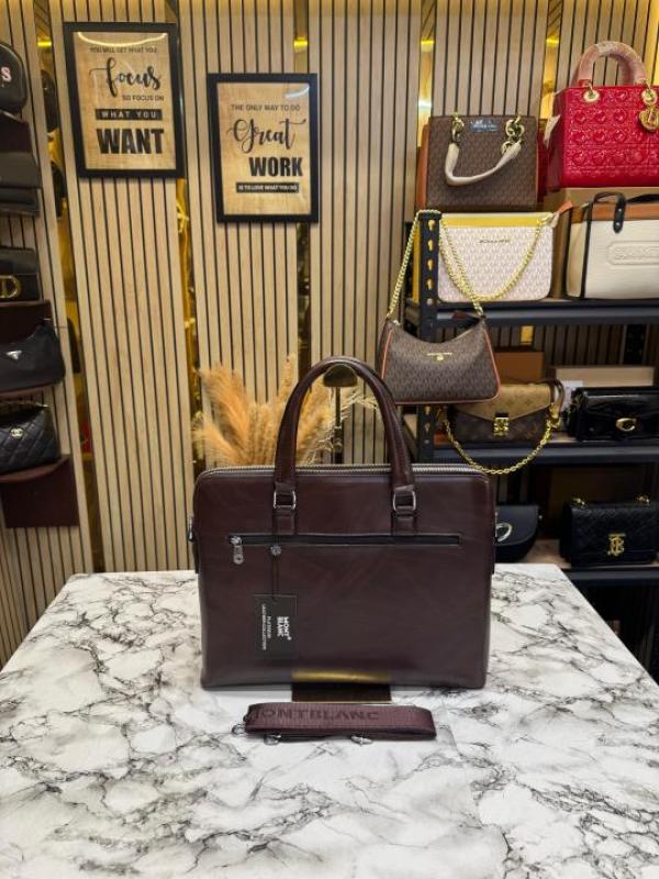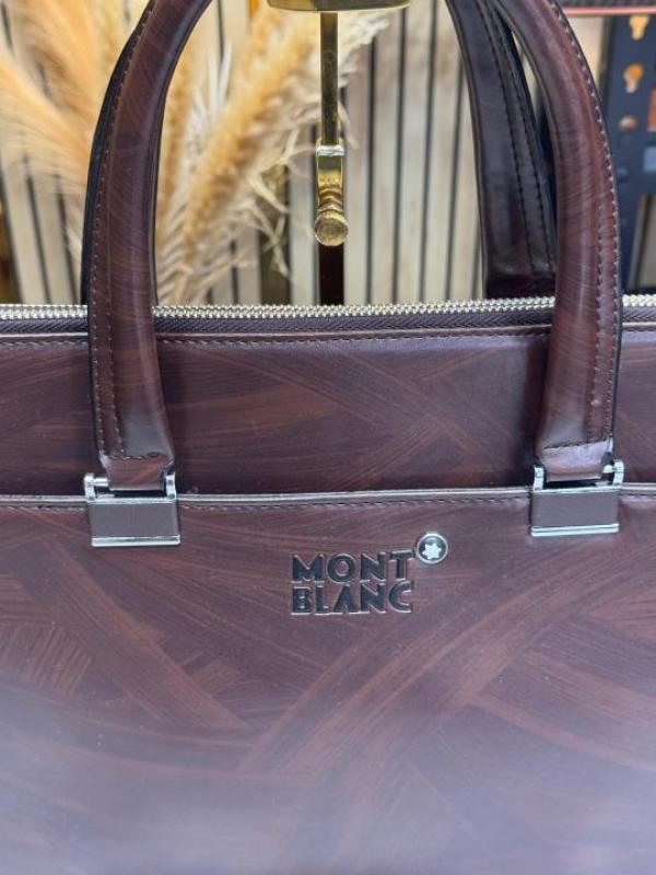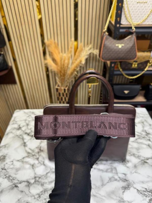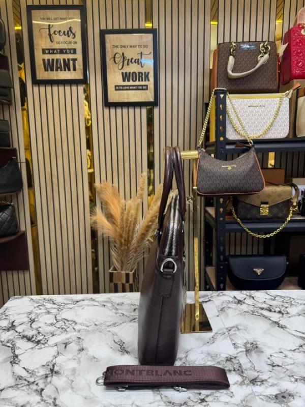 Mont Blanc Dark Brown Leather Laptop Bag With Shoulder Strap